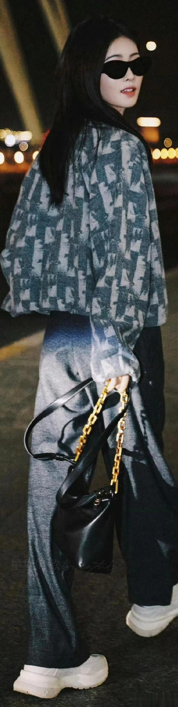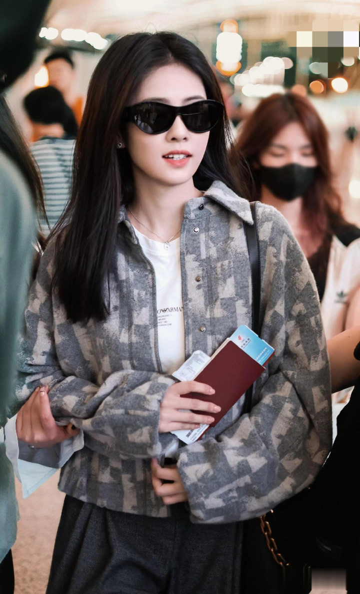 白鹿启程米兰时装周机场路透照, 身材比例超绝, 美得高级又有